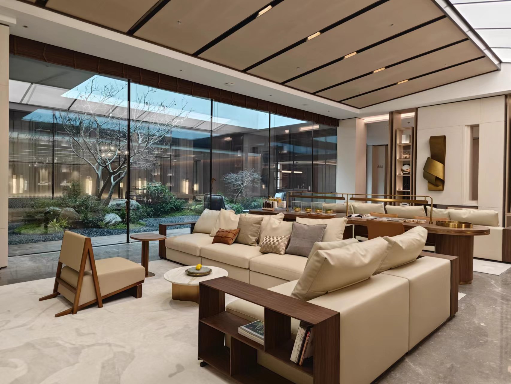 澄云廬項目占地面積50237㎡,容積率1.1,總建筑面積約9.6萬方,其中地上計容建筑面積約5.5萬方,地下建筑面積約4萬方,綠地率A區30%、B區25%,主要產品類型為合院(7棟)、疊墅(17棟)、洋房(3棟),總規劃戶數僅307戶。