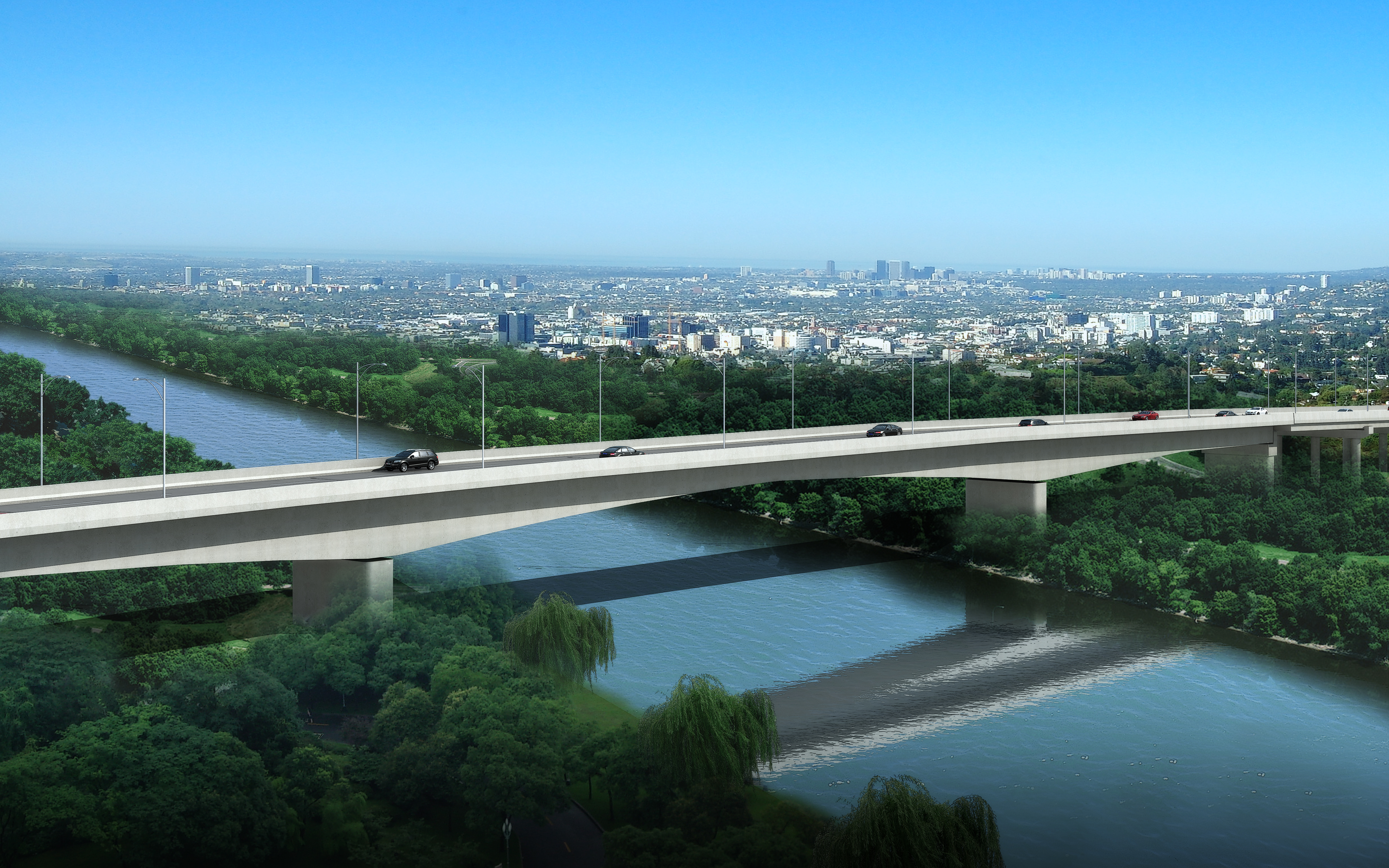 全線按二級公路標準建設,設計車速60Km/h,采用瀝青混凝土路面,主橋采用60m+100m+60m預應力混凝土連續梁結構,引橋采用25m先張法預應力混凝土簡支梁橋,橋梁設計荷載公路-Ⅰ級。
