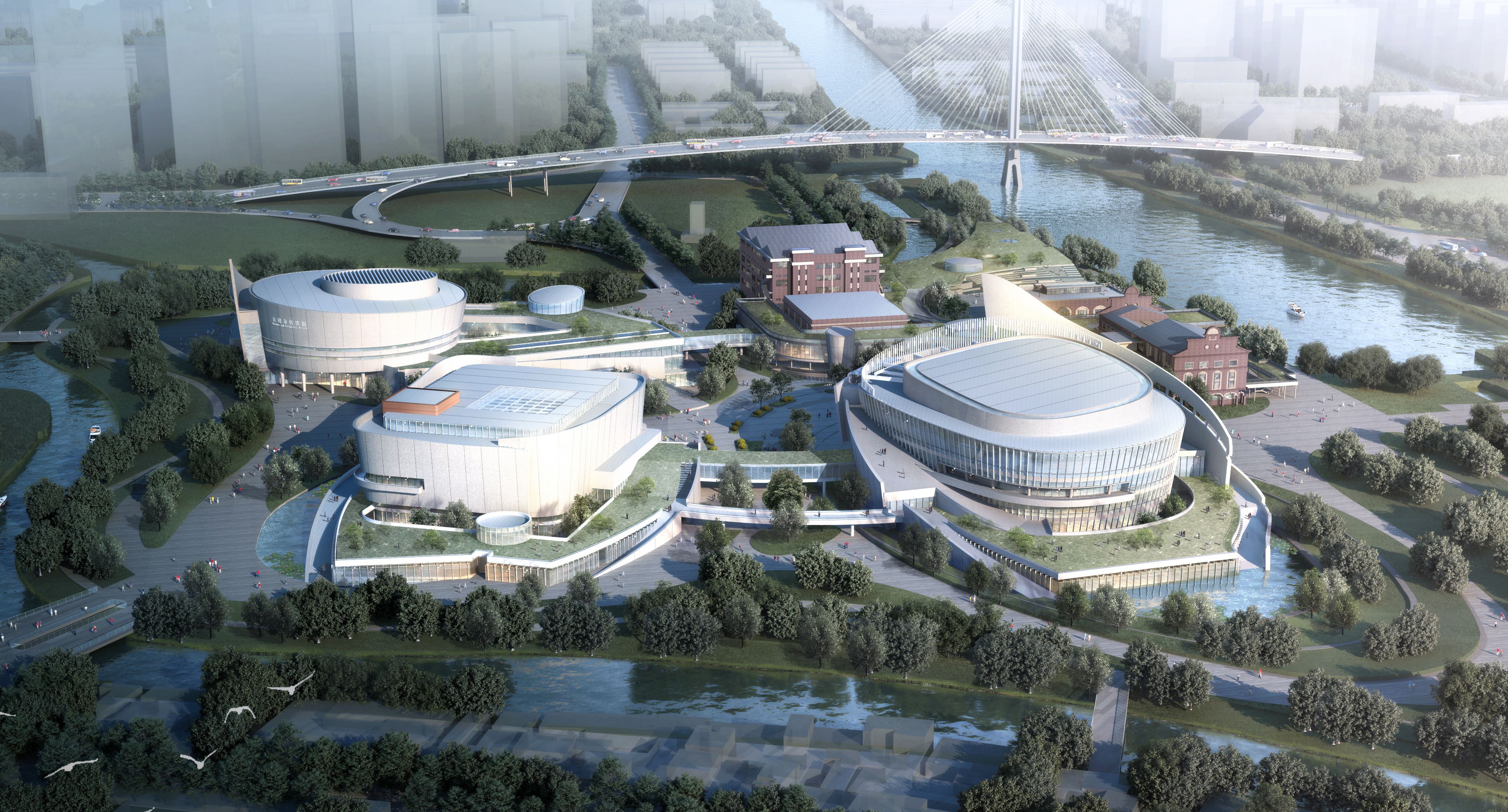 國樂島項目總投資25億元,總建筑面積12.5萬平方米,通過“改造+新建”打造集“一廳兩館兩中心”、文旅服務于一體的復合型文化藝術島,并依托江陰優(yōu)秀的國樂基因,深入挖掘國樂及相關傳統(tǒng)文化元素,全力塑造“國樂島”品牌,致力于打造激發(fā)城市活力的文化中心,成為江陰靚麗的城市名片。“一廳兩館兩中心”分別為:音樂廳、美術館、科技館、青少年活動中心、婦女兒童活動中心。