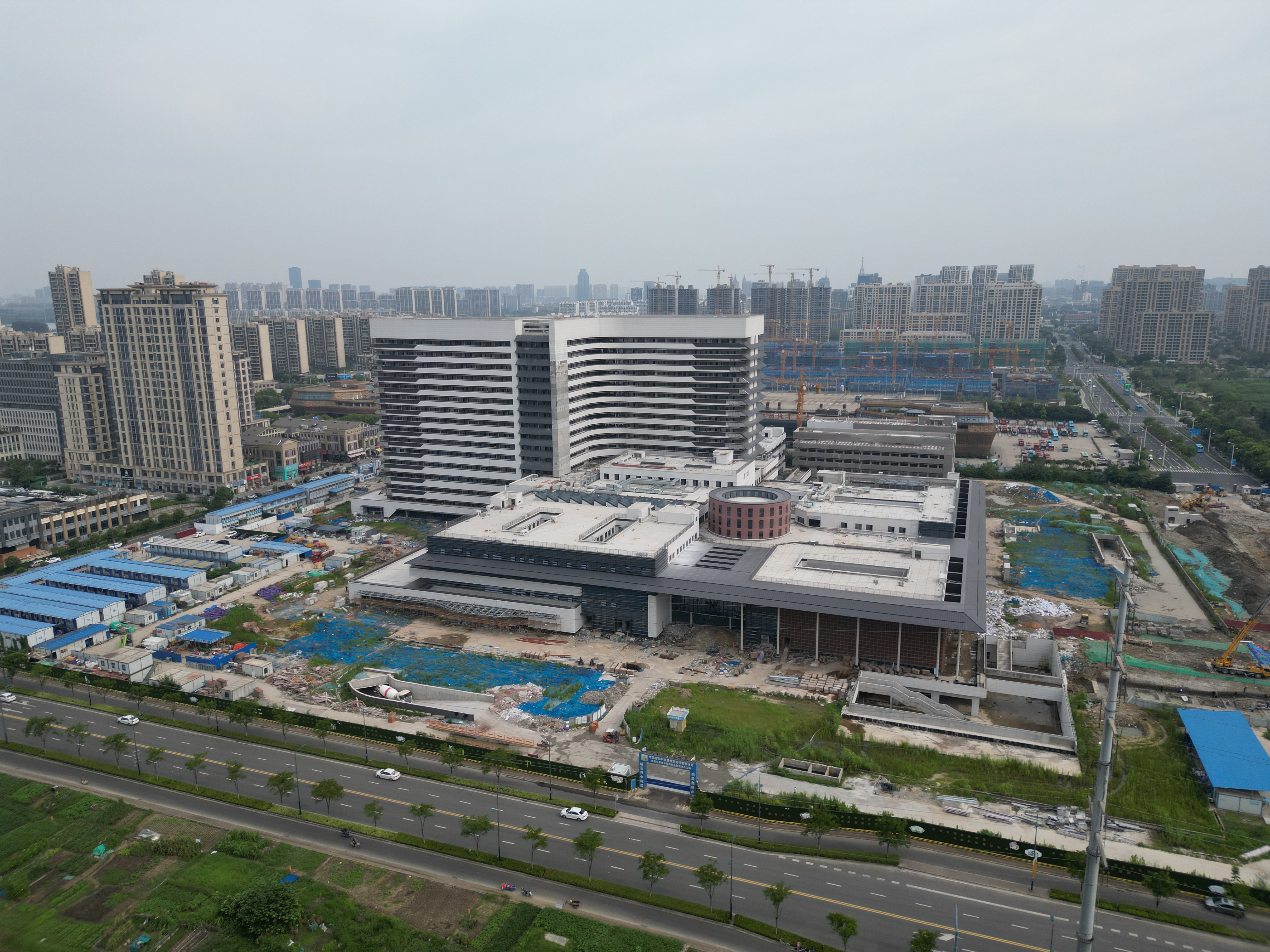 中醫院異地新建項目是江陰市委市政府重點惠民工程,項目位于澄江街道花北路以北、世新路以南、新南路以東、虹橋南路以西,江陰市汽車客運站正南側。項目概算總投資批復資金為149600萬元,建設用地南北長約288米,東西寬約308米,地形呈規整的方形,總用地面積約84709㎡,項目東南角規劃地下通道與地鐵S1線接通。建成后為1000床規模的三級甲等中醫醫院。總建筑面積185000㎡,其中地上約127000㎡,共16層,地下約56000㎡,共2層。