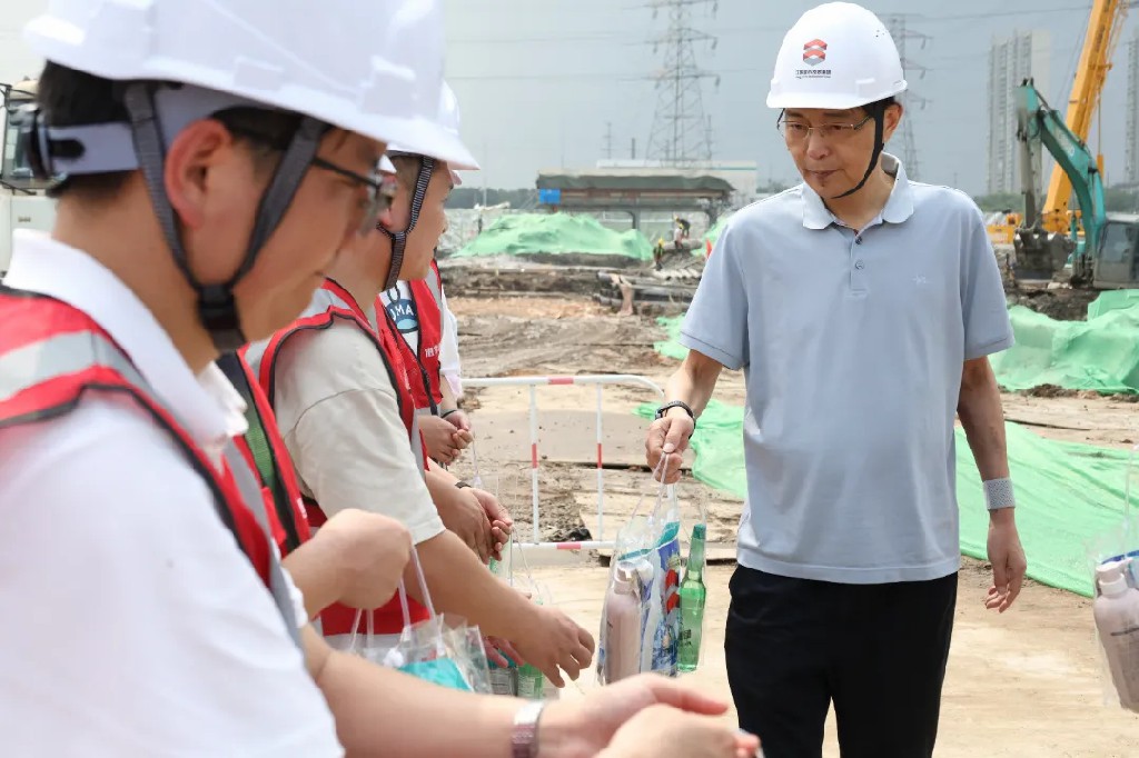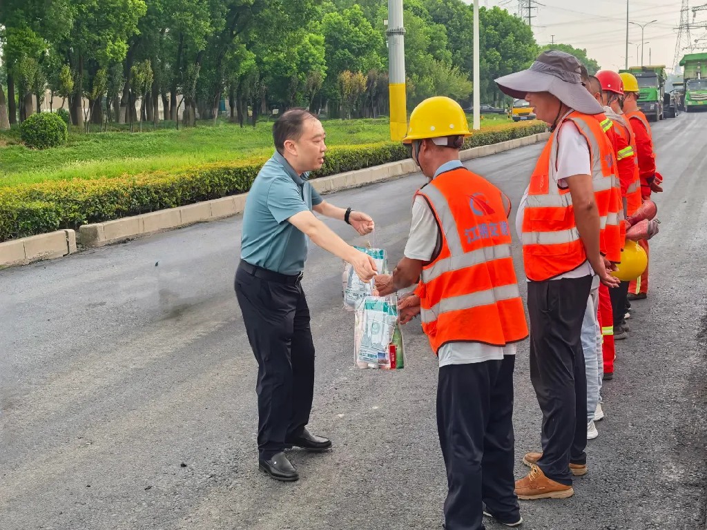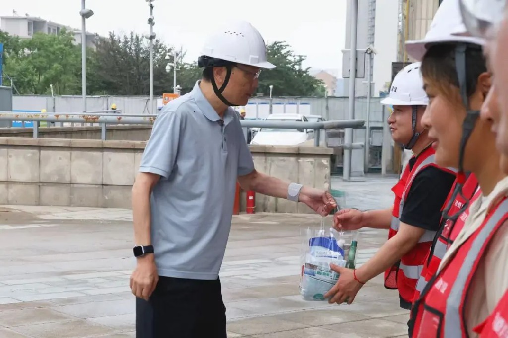 集團黨委副書記、總經(jīng)理徐飛一行為大家送上了防暑降溫物資,并叮囑大家在高溫環(huán)境下作業(yè)一定要注意勞逸結(jié)合,做好個人防護,確保自身安全與健康。同時,要求項目負責(zé)人合理安排施工時間,避免高溫時段室外作業(yè),切實將各項防暑降溫措施落到實處。