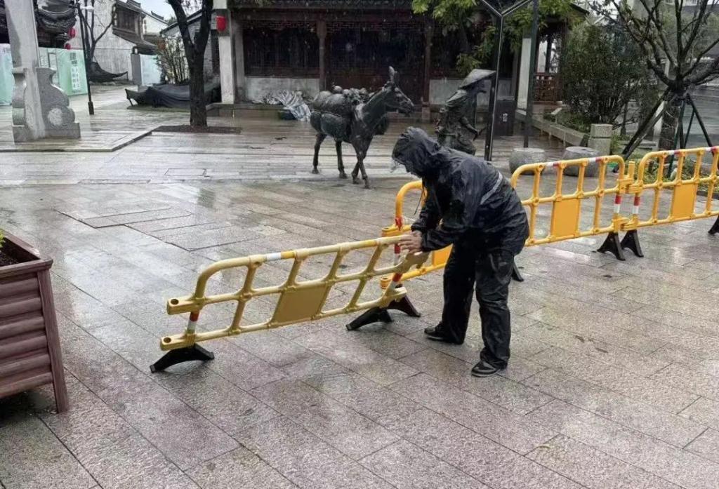 緊急響應,實時監測。組織人員分組巡查,及時解決街區排水系統堵塞問題,確保排水通暢;重點檢查商戶門窗加固、圍擋穩定性,處理松動隱患,全面筑牢安全防線。同時,積極協調防汛物資調配,強化信息共享與宣傳引導,提升公眾防范意識,確保街區安全可控。