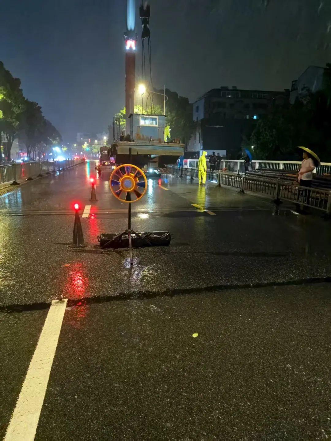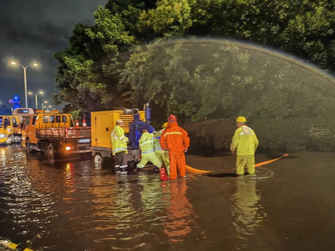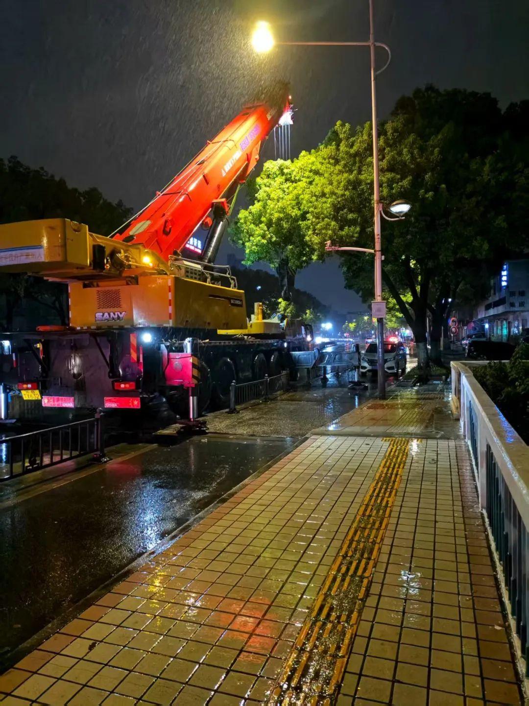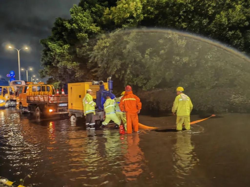 搶險隊員不懼風雨,沖鋒在前,對道路積水、地面排水溝堵塞等情況進行搶險工作,確保積水早發現、快處理。累計出動應急搶險人員187名、機械車輛55臺,排除積水192處,清理倒伏樹木6棵。