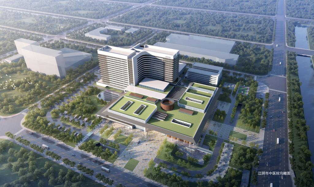 中醫院異地新建項目是江陰市委市政府重點惠民工程,項目位于澄江街道花北路以北、世新路以南、新南路以東、虹橋南路以西,江陰市汽車客運站正南側。項目概算總投資批復資金為149600萬元,建設用地南北長約288米,東西寬約308米,地形呈規整的方形,總用地面積約84709㎡,項目東南角規劃地下通道與地鐵S1線接通。建成后為1000床規模的三級甲等中醫醫院。總建筑面積185000㎡,其中地上約127000㎡,共16層,地下約56000㎡,共2層。